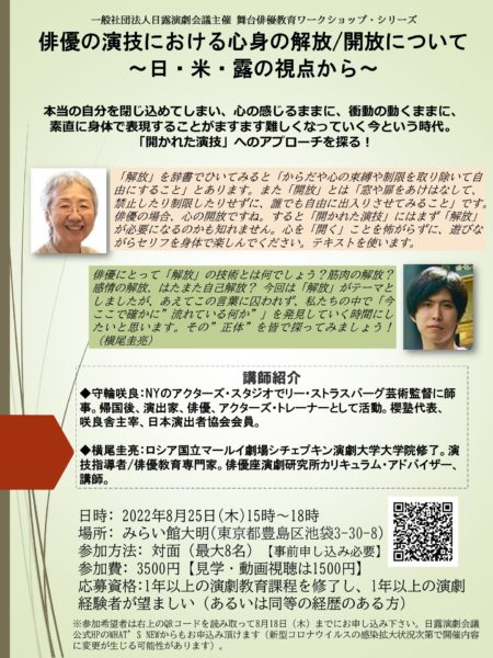 一般社団法人日露演劇会議主催 舞台俳優教育ワークショップ・シリーズ